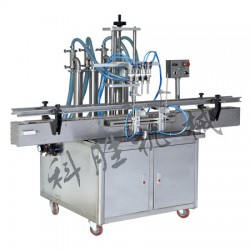 該機(jī)有四個(gè)灌裝頭,由四個(gè)氣缸驅(qū)動(dòng)、灌裝物料更加快速精確。
