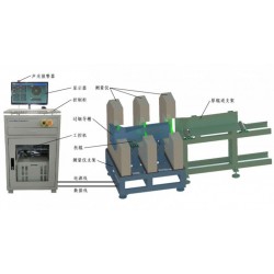 測量單元的測量頻率為500-1000HZ,采用電子同步控制單元實現(xiàn)3臺設備的同步采樣,可連續(xù)檢測,根據(jù)檢測數(shù)據(jù)模擬出整根線、棒(管)材的直線度,左、右兩臺的距離可根據(jù)具體情況確定安裝位置。