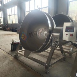 由1Cr18Ni9(USU304)不銹鋼制作。鍋體下部有放料孔,夾層鍋內(nèi)有攪拌器。鍋蓋上部焊接支架上,裝置減速機(jī)與電機(jī),由傳動(dòng)軸驅(qū)