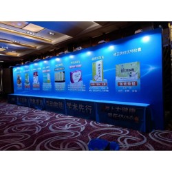 3, 活動背景非伸縮性快展背景板搭建:高飽和度純布畫面--高清,高飽和,亞面,寬幅,細膩。