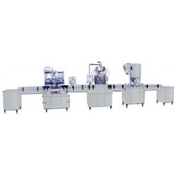 人工上瓶-自動拔蓋-內外刷瓶機-自動上瓶機-洗瓶機-灌裝-人工上蓋-履帶式壓蓋機-自動套標機-膠帽熱縮機-燈檢-自動提桶-人工套薄膜袋