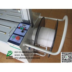 依利達ELD-111 全自動打包機工作原理:打包物體基本處理機器中間,首先右頂體上升,壓緊帶的前端,把帶子收緊捆在物體上,隨后左頂體上升,壓緊下層帶子的適當位置,加熱片伸進兩帶子中間,中頂?shù)渡仙?,切斷帶子?后把下一下捆扎帶子送到位,完成一個工作循環(huán)。