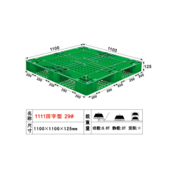 7.田字型塑膠卡板:在九叫型塑膠卡板的反面外形基礎(chǔ)反面橫的三組腳及豎的三組腳各自平行分布的塑膠卡板。
