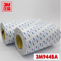 3M9448A雙面膠,是3M雙面膠中一種,3M9448A雙面膠,屬于無紡布基材雙面膠,由棉紙雙面涂布丙烯酸膠制成,顏色為半透明;是一款易于操作,通用的型的雙面膠,具有耐久性,耐溫性好,短期耐溫性120℃,長期耐溫性90℃;防水性,回彈性好,粘力強(qiáng)。規(guī)格為:1200MM*50M*0.14MM,具有良好的初粘性和持粘性,易模切加工,穩(wěn)定性好,對塑膠、橡膠、粗糙表面均有良好的粘性;在高溫下具有良好持粘力,長期耐溫80℃,短期耐溫可達(dá)120℃;按膠帶顏色不同分為白膠和黑膠。該膠廣泛用于加工行業(yè)。在環(huán)保方面符合ROHS、PFOS法規(guī)要求,廣泛用于加工行業(yè),包括橡塑行業(yè)中橡膠條及塑料的粘結(jié),適用于冰箱蒸發(fā)器及控制面板粘結(jié)、銘牌粘結(jié)、電視機(jī)、播放機(jī)前面板粘接之用. 可以用在手提式電腦、手機(jī)、PDA、汽車、液晶顯示器、OA設(shè)備等電子通用材料的粘接之用,包括橡塑與泡綿行業(yè)中橡膠條及塑料的黏結(jié).
