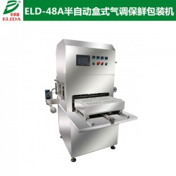 依利達ELIDA品牌ELD-48A半自動盒式氣調(diào)保鮮包裝機(食品氣調(diào)保鮮包裝機 生鮮肉氣調(diào)保鮮機 熟肉制品氣調(diào)包裝機 魚類氣調(diào)保鮮包裝設(shè)備 家禽半自動盒式氣調(diào)保鮮包裝機械)又稱MAP,是當(dāng)今世界食品保鮮包裝的一項熱門先進技術(shù),它利用CO2、O2、N2等保護性混合氣體轉(zhuǎn)換包裝內(nèi)的空氣,利用各種氣體所起的不同作用,抑制引起食品變質(zhì)的大多數(shù)微生物的生長繁殖,并使新鮮果品蔬菜等植物性食品呼吸速率降低,從而使食品保鮮并延長保鮮期。包裝后的成品形狀為盒裝或袋裝,和適用于食品在超市小包裝零售,批發(fā)市場中大包裝的物流和銷售。
