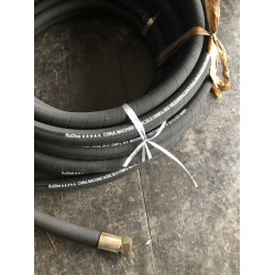 液壓軟管主要由耐液體的內(nèi)膠層、中膠層、2或4或6層鋼絲纏繞增強(qiáng)層、外膠層組成,內(nèi)膠層具有使輸送介質(zhì)承受壓力,保護(hù)鋼絲不受侵蝕的作用,