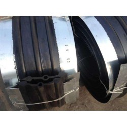 鋼邊橡膠止水帶系以一般可彈性的橡膠和兩頭配有鍍鋅鋼邊所組成的復(fù)合件。這種止水帶主要靠中心的橡膠段在混凝土變形縫間被壓縮或拉伸,而起到密封止水作用。一般來說,混凝土和橡膠的粘附力較差,在慣例施工中,又因橡膠是柔軟彈性體,使混凝土在澆筑時不易被掏實,故在混凝土接縫膨脹,扯離、改變時會經(jīng)常出現(xiàn)鋼邊橡膠止水帶松動和掉落,致使在水頭壓力較高情況下會發(fā)生滲漏現(xiàn)象。關(guān)于變形縫大的接縫來說,問題就更為突出。選用鍍鋅鋼邊橡膠止水帶,基本上能夠戰(zhàn)勝純橡膠橋式止水帶的這些不足。