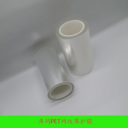 庫(kù)瑪PET保護(hù)膜采用進(jìn)口材料制成,將聚酯薄膜作為基材,在原料單面通過(guò)涂布機(jī)涂布丙烯酸脂類粘劑再收卷而形成。在PET網(wǎng)紋保護(hù)膜表面有整齊排列的網(wǎng)紋分布,保護(hù)膜的厚度由30um~130um不等。粘度分為超低粘、低粘、中粘、中高粘和高粘,根據(jù)貼合材料不同來(lái)選擇PET網(wǎng)紋保護(hù)膜的厚度和粘度。