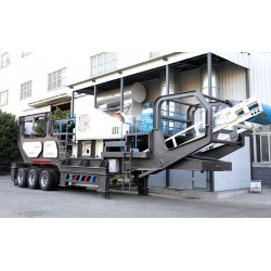移動粗破打石機的移動車架上安裝給料機和粗破碎機(一般選顎破),移動細碎打石機的車架上安裝二破破碎機(一般選反擊破和圓錐破)和振動篩,再加上皮帶機連接兩臺移動設備,就行程了移動打石生產(chǎn)線。