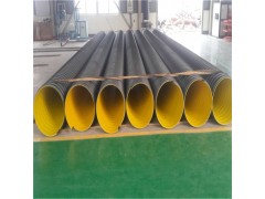 在主機(jī)上先纏繞一個(gè)實(shí)壁PE內(nèi)層管,再將折成倒“U”形、涂覆有粘接樹脂的鋼板增強(qiáng)體放置在實(shí)壁PE內(nèi)層管的設(shè)計(jì)位置上,再再其外部擠出復(fù)合一層與鋼板增強(qiáng)體波形相同的PE外層,通過(guò)整型、定型、冷卻、切割后就得到成品鋼帶波紋管,地埋排污管。