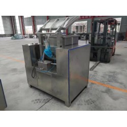 小型真空和面機器主要適用于各種面食產(chǎn)品的加工,可根據(jù)面食產(chǎn)品所使用的小麥粉的特性選擇不同形式的真空和面機器價格不同,設備和面效果也不同。結構:和面機是由機架、機體、可95度傾斜面箱、面箱蓋、機械傳動部分、高強度真空泵和電器部分組成。 材質:機架、機體、和面槳葉、面箱、面箱蓋為SUS304不銹鋼,面箱內表面和雙絞龍和面槳葉為鏡面拋光處理。特點:和面采用雙絞龍或板式攪拌器,配備一臺高強度真空泵,本機同鏈輪轉動,帶動槽內擺桿轉動,起到面粉混合攪拌的功能,料斗開蓋、倒箱采用液壓控制、定位準確。