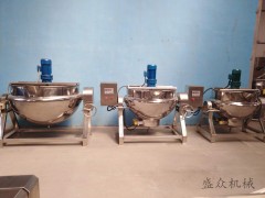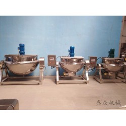 夾層鍋又名蒸汽鍋、蒸煮鍋、夾層蒸汽鍋.通常由鍋體和支腳組成。鍋體是由內(nèi)外球形鍋體組成的雙層結(jié)構(gòu)形式。夾層鍋具有受熱面積大、熱效率高、加熱均勻、液料沸騰時(shí)間短、加熱溫度容易控制、外型美觀(guān)、安裝容易、操作方便、安全可靠等特點(diǎn)。夾層鍋廣泛應(yīng)用于各類(lèi)食品的加工,也可用于大型餐廳或食堂熬湯、燒菜、燉肉、熬粥等,是食品加工提高質(zhì)量、縮短時(shí)間、改善勞動(dòng)條件的良好設(shè)備。夾層鍋以一定壓力的蒸汽為熱源(也可選用電機(jī)熱),夾層鍋具有受熱面積大、熱效率高、加熱均勻、液料沸騰時(shí)間短、加熱溫度容易控制等特點(diǎn)。夾層鍋鍋內(nèi)層鍋體(內(nèi)鍋)采用耐酸、耐熱不銹鋼制造,配有壓力表和安全閥,外型美觀(guān)、安裝容易、操作方便、安全可靠。